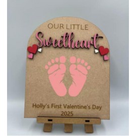 We will personalise this wooden plaque with your babies name and then you add their footprints for a super cute keepsake! Can also be painted in blue colours for boys ????Size 9 x 7.5 inchesArea for footprints is 6 x 4 inches, These can be made bigger on request.All my wooden items are cut and hand painted by myself so please allow 2-3 days for you..
